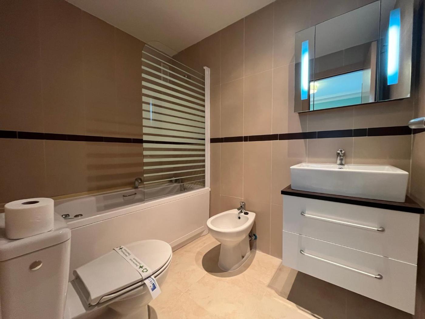 Apartamento de 2 dormitorios. Boasting a private entrance, this air-conditioned apartment includes 1 living room, 2 separate bedrooms and 2 bathrooms with a bath and a shower. In the fully equipped kitchen, guests will find a stovetop, a refrigerator, a dishwasher and kitchenware. Featuring a terrace with sea views, this apartment also offers a washing machine and a flat-screen TV. The unit has 4 beds.