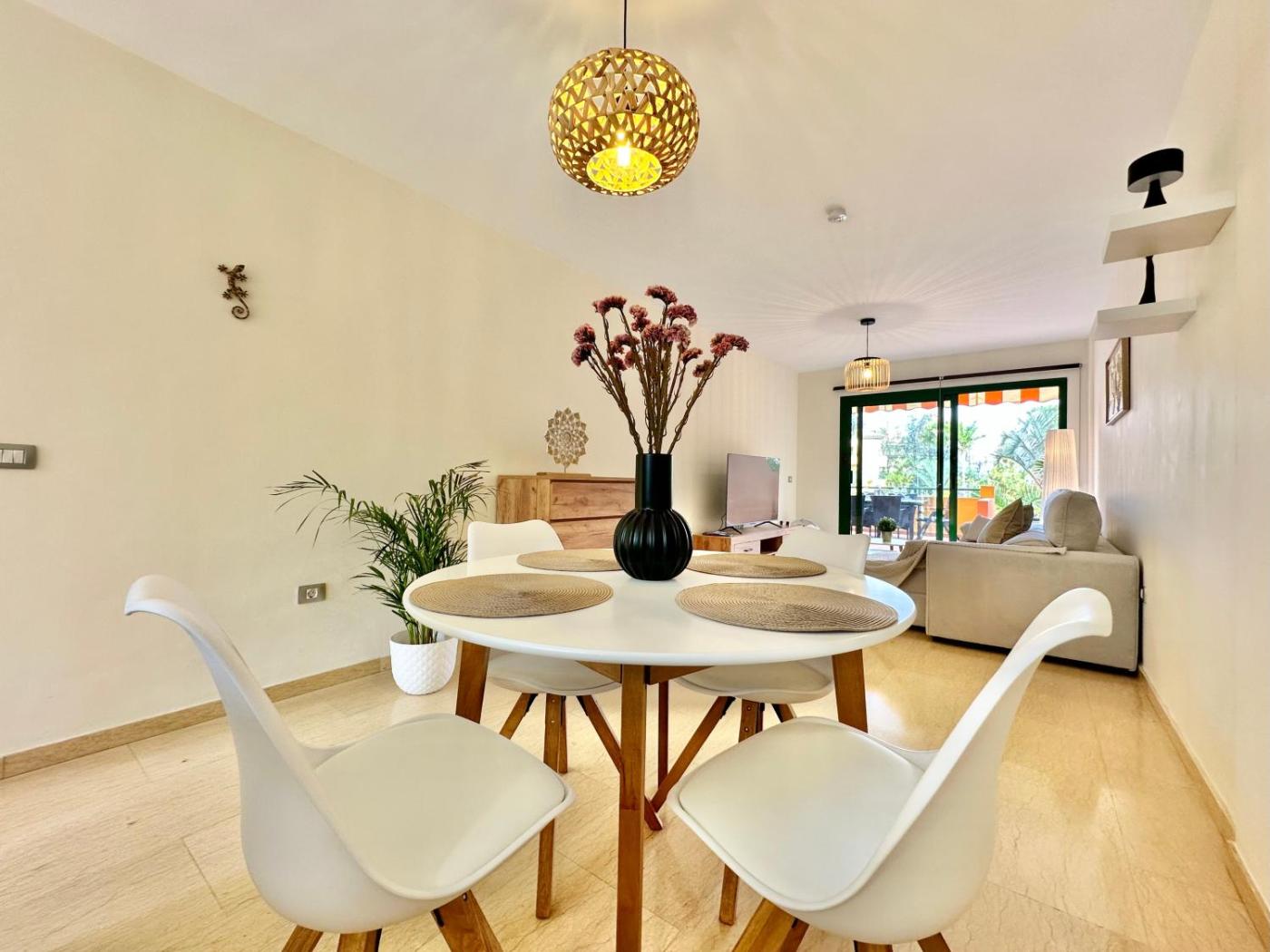 El apartamento cuenta con terraza y vistas a la piscina, y dispone de 2 dormitorios, una sala de estar, TV de pantalla plana, una cocina equipada con nevera y lavavajillas, y 1 baño con ducha. Hay toallas y ropa de cama en el apartamento.